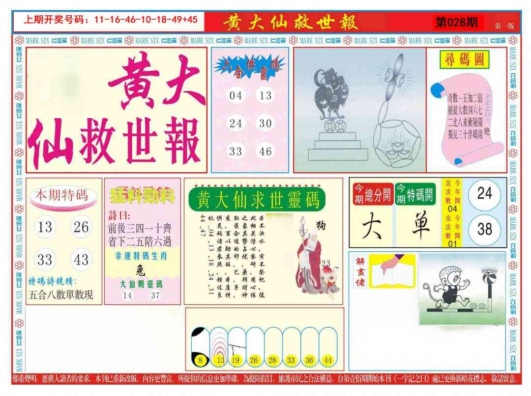 新黄大仙救世A