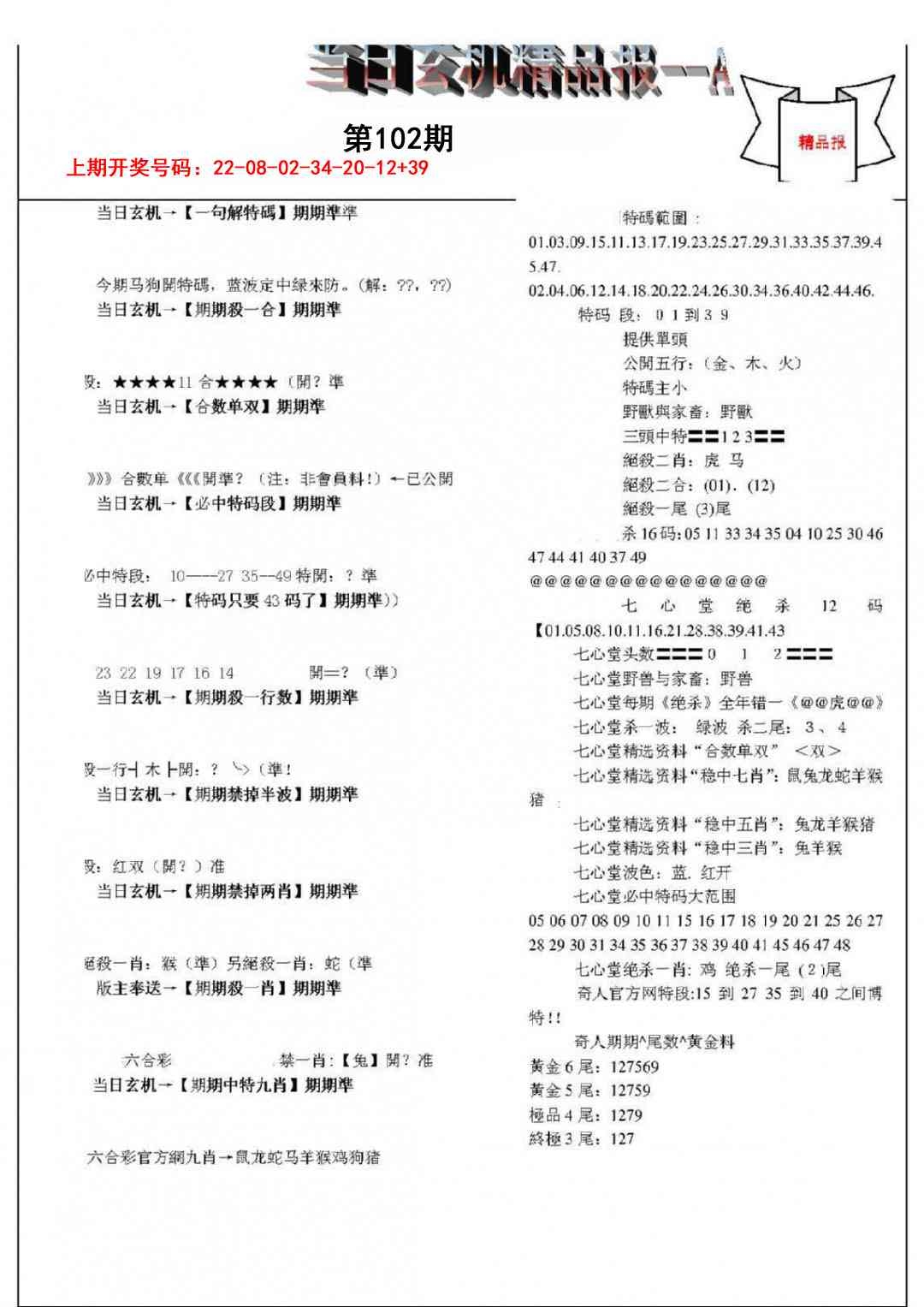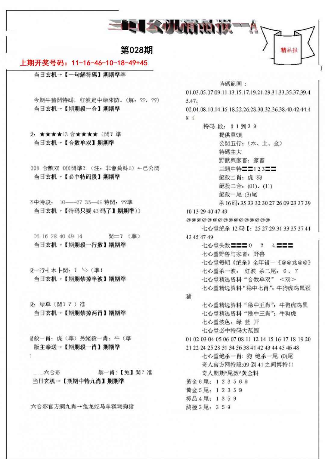 当日玄机精品报A